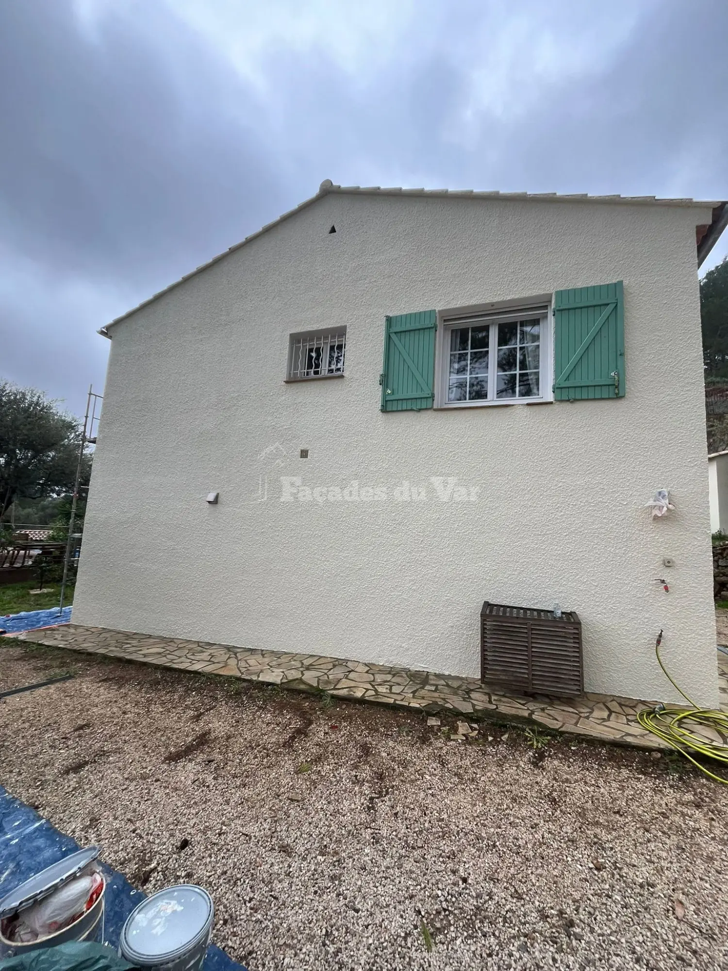 Ravalement et mise en peinture résine des façades d’une maison à SOLLIES-VILLE (83210)