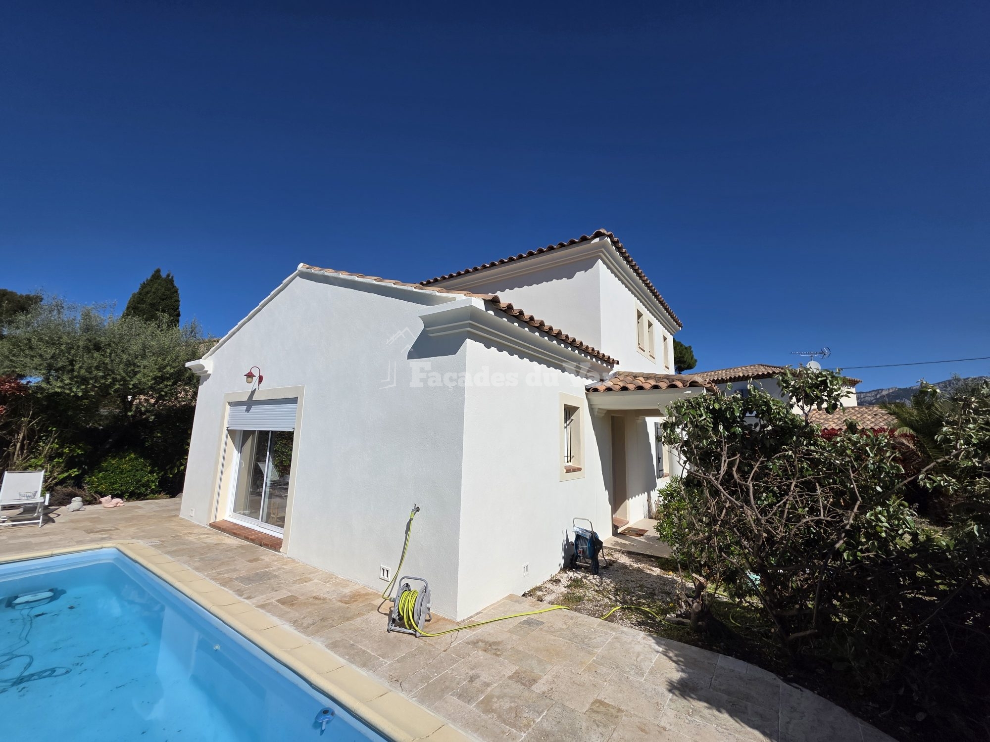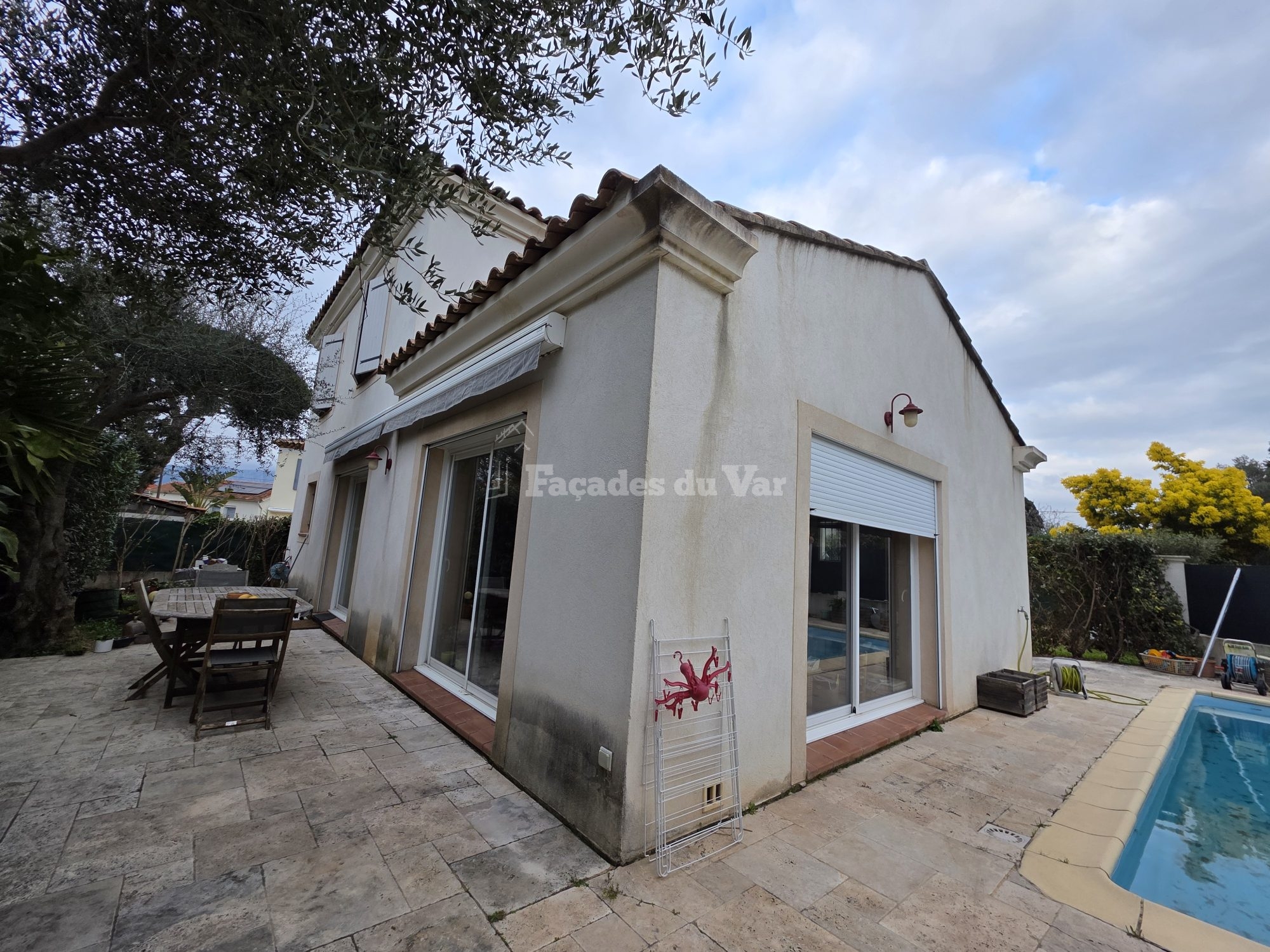 Notre nettoyage de façade en profondeur a permis d’éliminer toutes les traces noires incrustées dues à la pollution urbaine particulièrement présente dans cette zone côtière du Var.