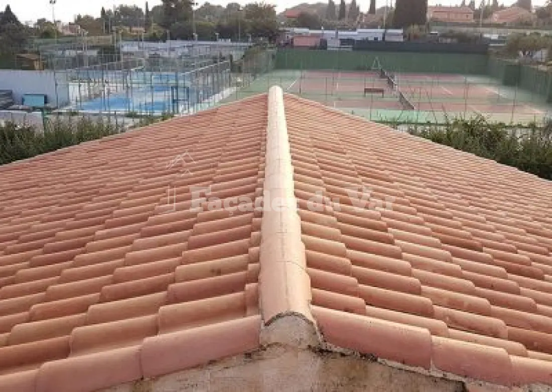 La maison visible depuis le tennis de Saint-Cyr-sur-Mer présentait une toiture sale due a la présence de mousse et de champignons.